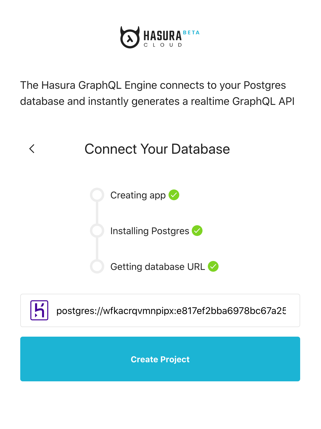 If you chose I have an existing Postgres database, enter your database connection URL.