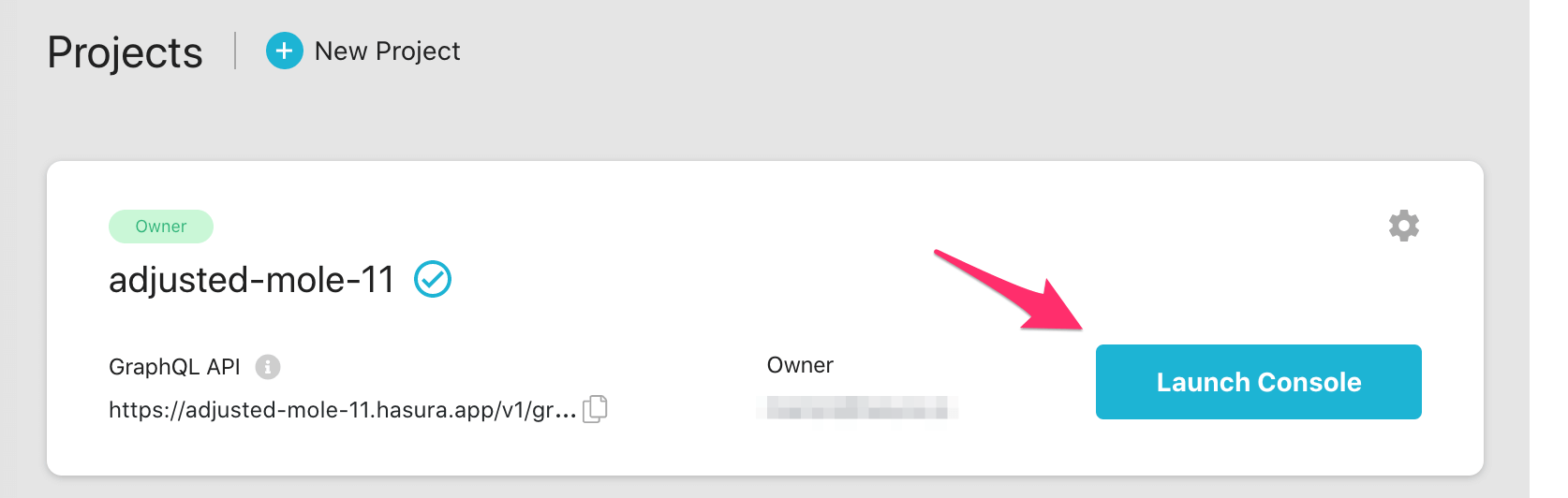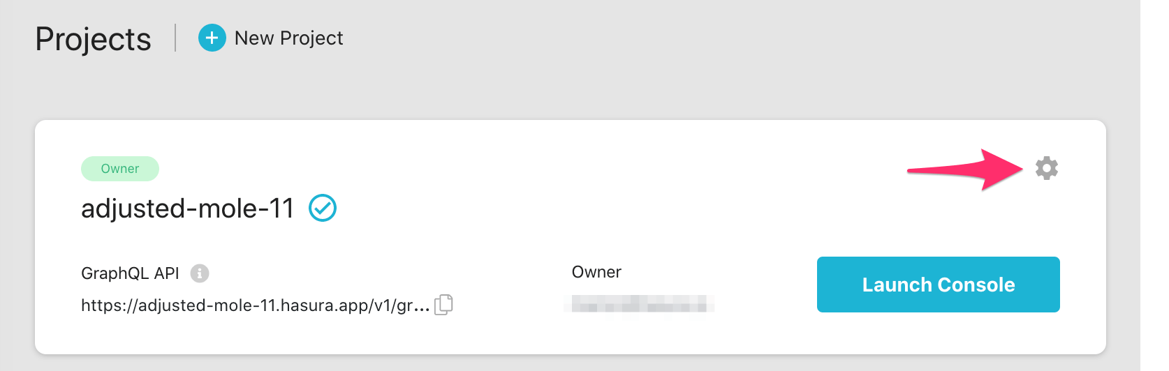 You can also click the gear icon to manage your Hasura Cloud project. (e.g. add collaborators, env vars or custom domains) and add an admin secret to make sure that your GraphQL endpoint and the Hasura console are not publicly accessible.