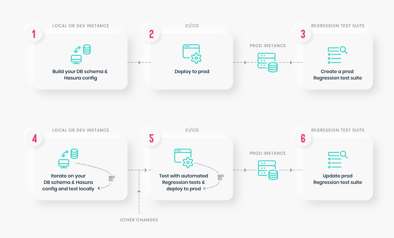 Hasura Cloud includes a comprehensive test bench that lets you seamlessly compile a test suite on each project, executable on any GraphQL Engine instance (ex: staging, prod).