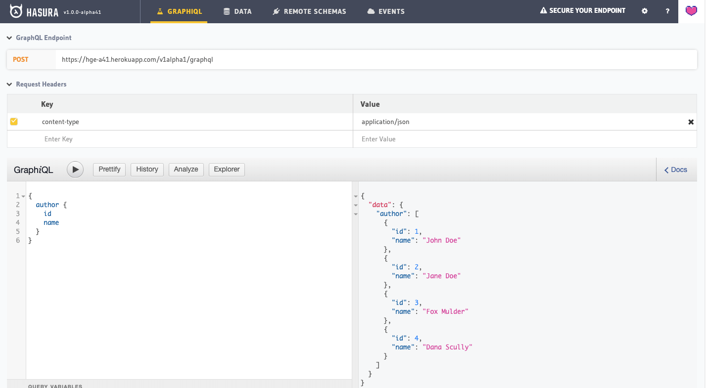 You’ll see that this results in a response that contains all the authors because by default the GraphQL query is accepted with admin permissions.