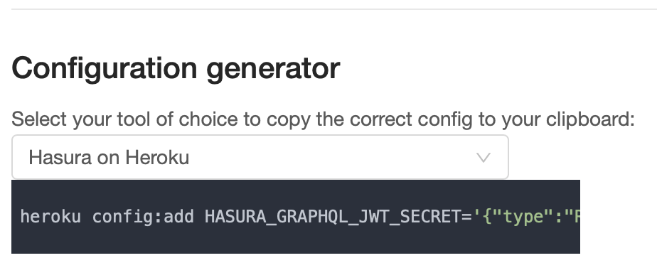 Step 3: Generate Hasura’s JWT config to securely verify your new tokens¶