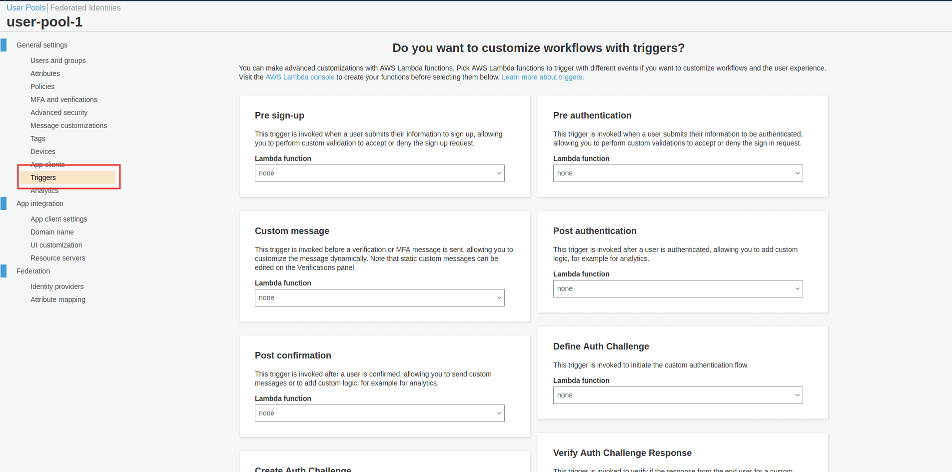 In cognito, select Triggers -> Pre Token Generation and choose the lambda function created above: